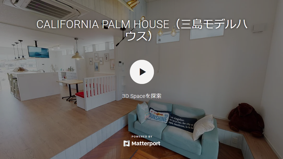 住起産業株式会社様 CALIFORNIA PALM HOUSE(三島モデルハウス)の3Dバーチャルツアーはコチラ